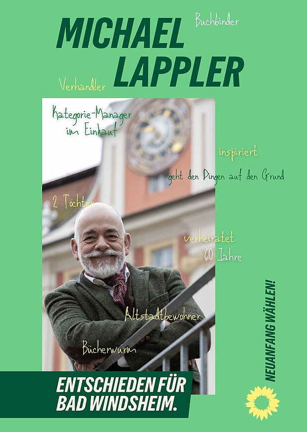 ich habe mich entschieden für Bad Windsheim, weil es hier fast alles gibt, was es für ein gutes Leben braucht und dann noch in Schön. Vor zwei Jahren bin ich mit meiner Frau aus Erlangen hierher gezogen - weil es uns hier gefällt! Die Altstadt, die Landschaft, das Freilandmuseum, die Bahnanbindung und die Geschäfte vor Ort, nicht zu vergessen die Aussicht auf eine Landesgartenschau! Inzwischen kenne ich die Stadt besser - auch durch regelmäßige Besuche der Stadtratssitzungen.