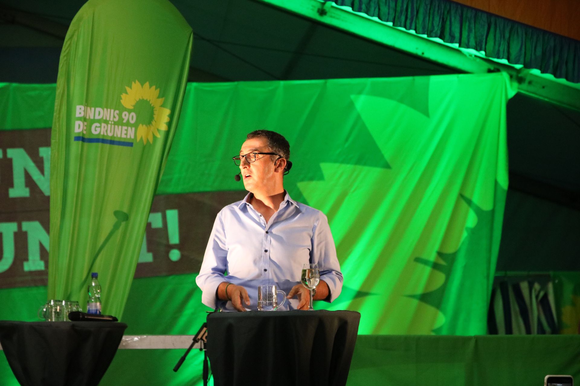 Katharina Schulze und Cem Özdemir füllen das Weinzelt in Weigenheim und stimmen die 1000 Besucher*innen auf einen erfolgreichen Wahlkampf für die Landtagswahl in Bayern ein.