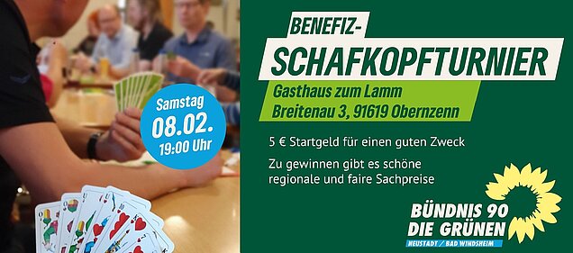 Herzliche Einladung zum Zweiten GRÜNEN Benefiz-Schafkopfturnier!