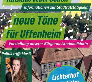 - Höhepunkt des Abends: Unser*e Bürgermeisterkandidat*in stellt sich vor - erfahrt aus erster Hand, wer die Person ist und warum sie sich für Uffenheim einsetzen will